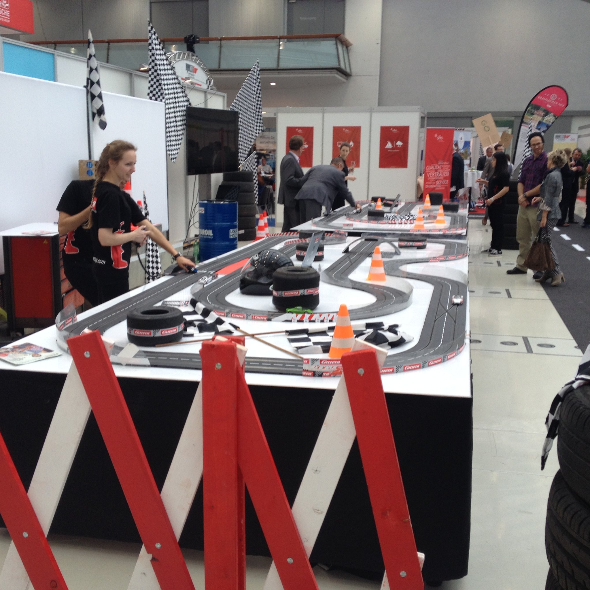 Von Kurvenbennenungen über die Moderation bis hin zur Zeitnehmung, können wir die Carrerabahn individuell auf Ihren Messestand anpassen.