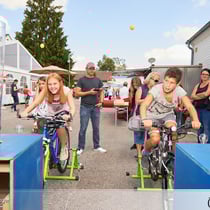 Die Autos werden nicht wie gewöhnlich mittels Handregler gesteuert, sondern durch das Fahrradfahren. Je schneller man Tritt, desto schneller fährt das Auto.